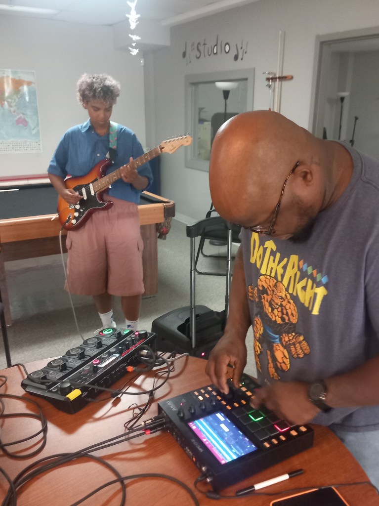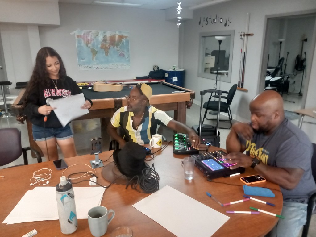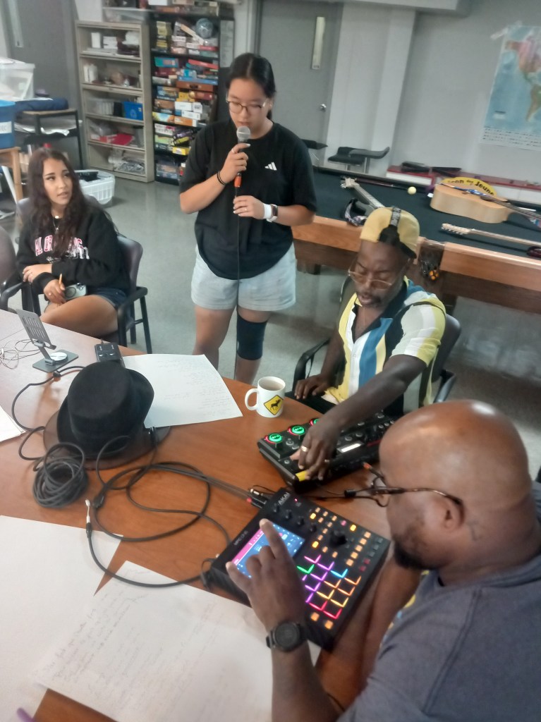 Et finalement, Simon16 & Funk Lion sont venus donner un atelier de Beat Making, organisé par les Ateliers Speech. Avec les jeunes, il y a eu un moment de discussion, de brainstroming, suivi d’un moment d’écriture. De la musique s’est composée, des paroles ont été ajoutées… Quel beau moment de création artistique!