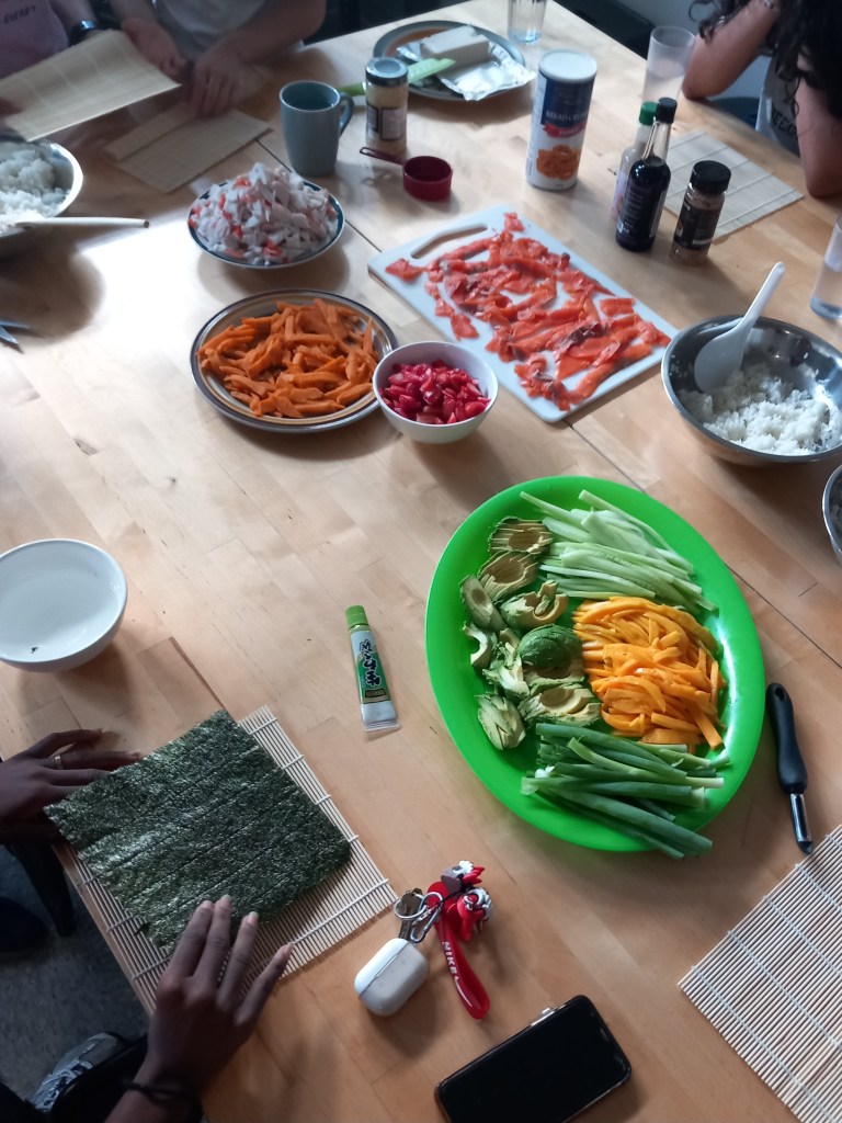 Nous avons fait plusieurs ateliers de cuisine; les ‘’mardi cuisine’’, nous avons fabriqué nos propres pâtes, on a fait des tacos, des grilled cheese, des sushis, des gâteaux et biscuits, et concocté une sauce piquante!!