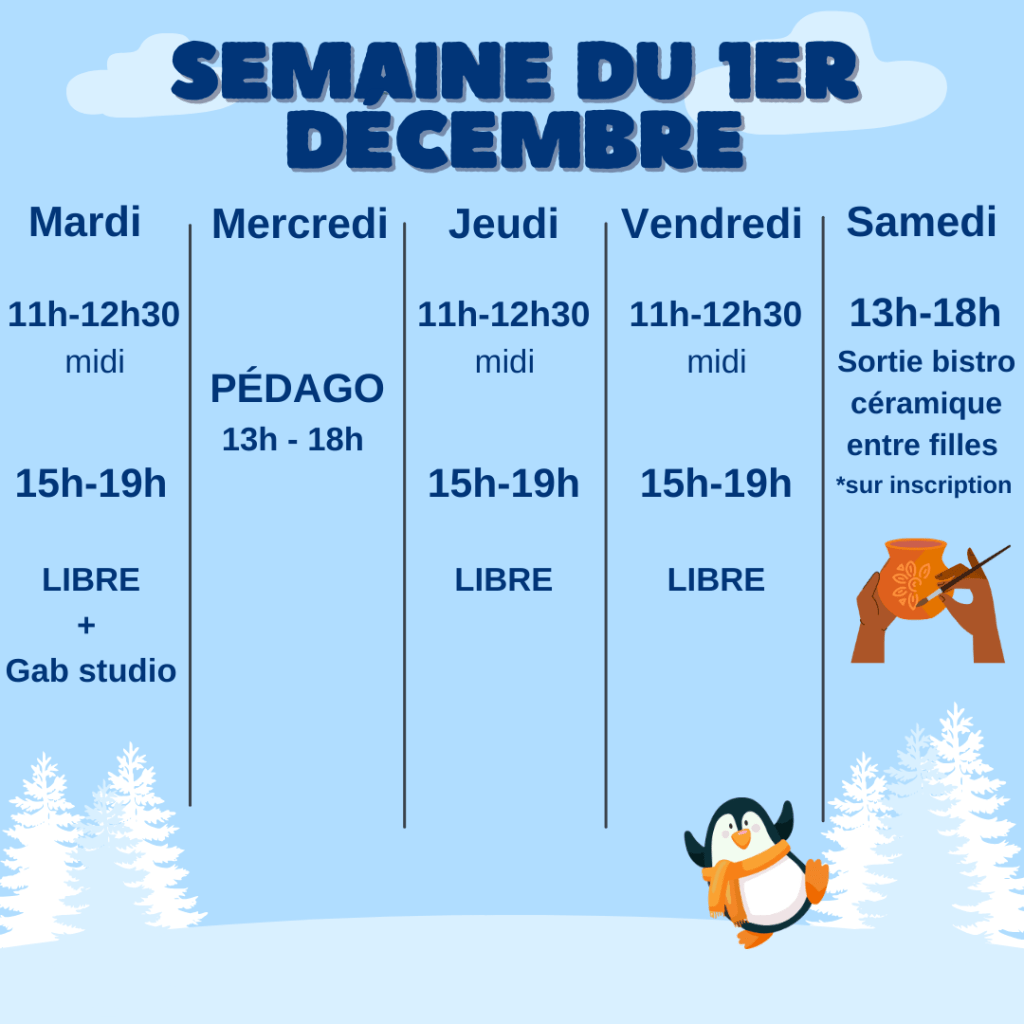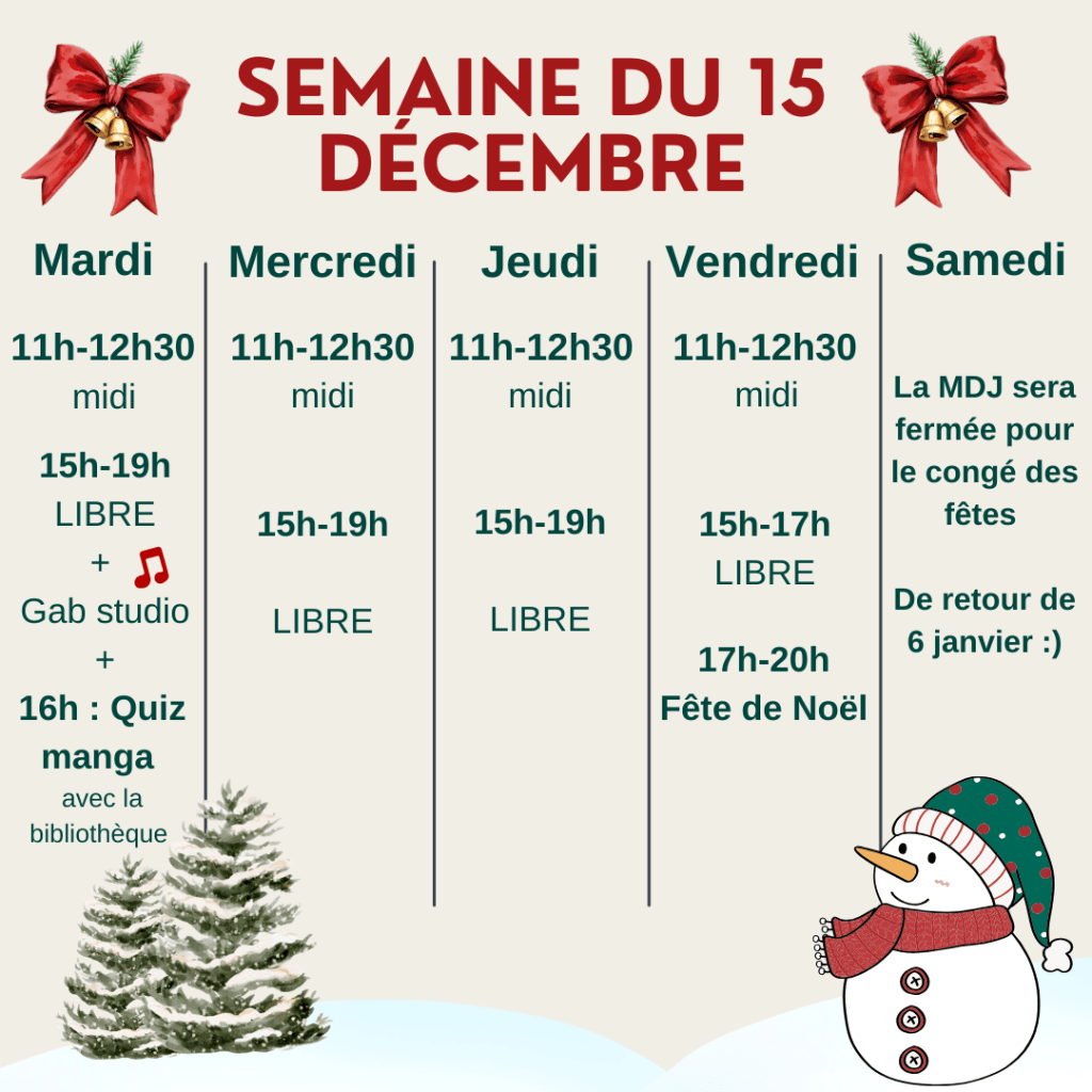 Notre horaire peut changer, consultez nos réseaux sociaux pour plus d’informations.